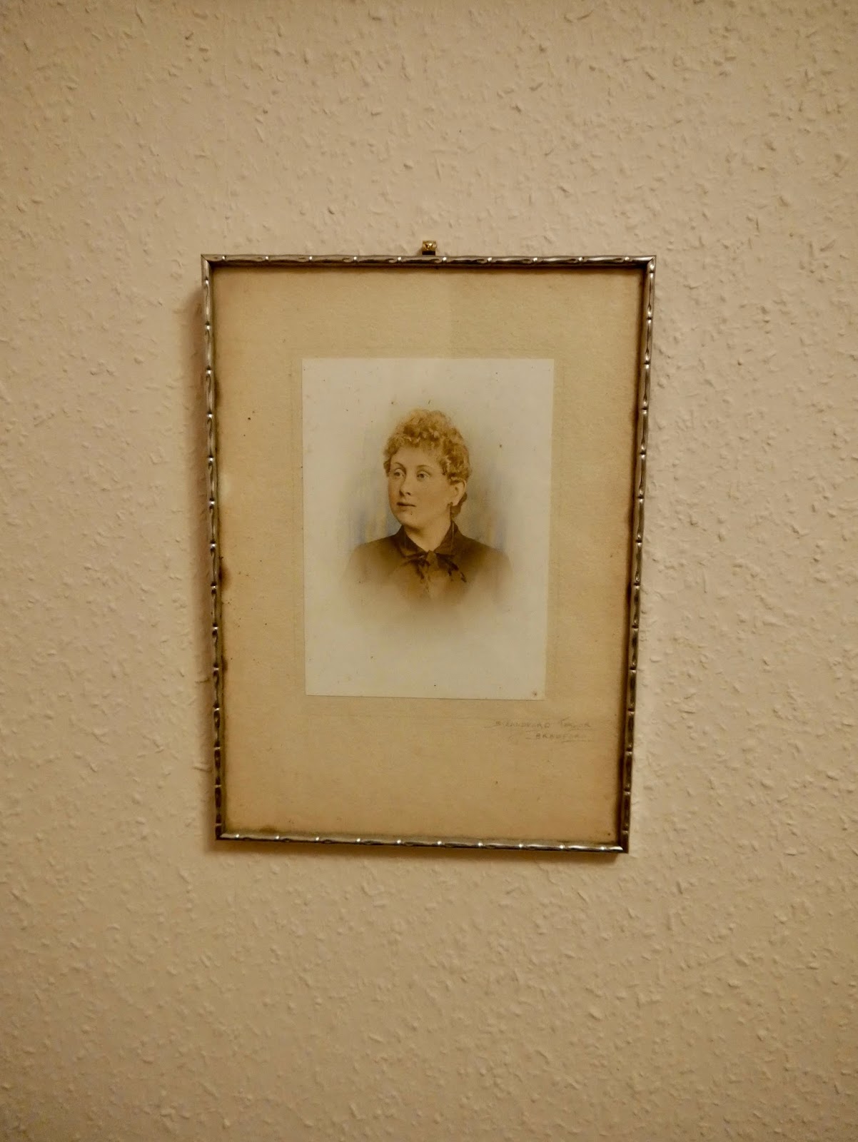 Этот викторианский портрет долго висел в комнате для гостей, но там его было почти не видно, и поэтому решили перевесить в другую — маленькую светелку, выходящую окнами в сад (бывшую комнату пасынка). Л. говорит, что это прабабушка его первой жены, но, увы, никто в семье не знает, как ее звали... Можно, конечно, попытаться найти метрики в архивах (и поиск, скорее всего, увенчается успехом), но пока есть только он сам — ее дагерротип (ранние 80-е гг. XIX в.).
